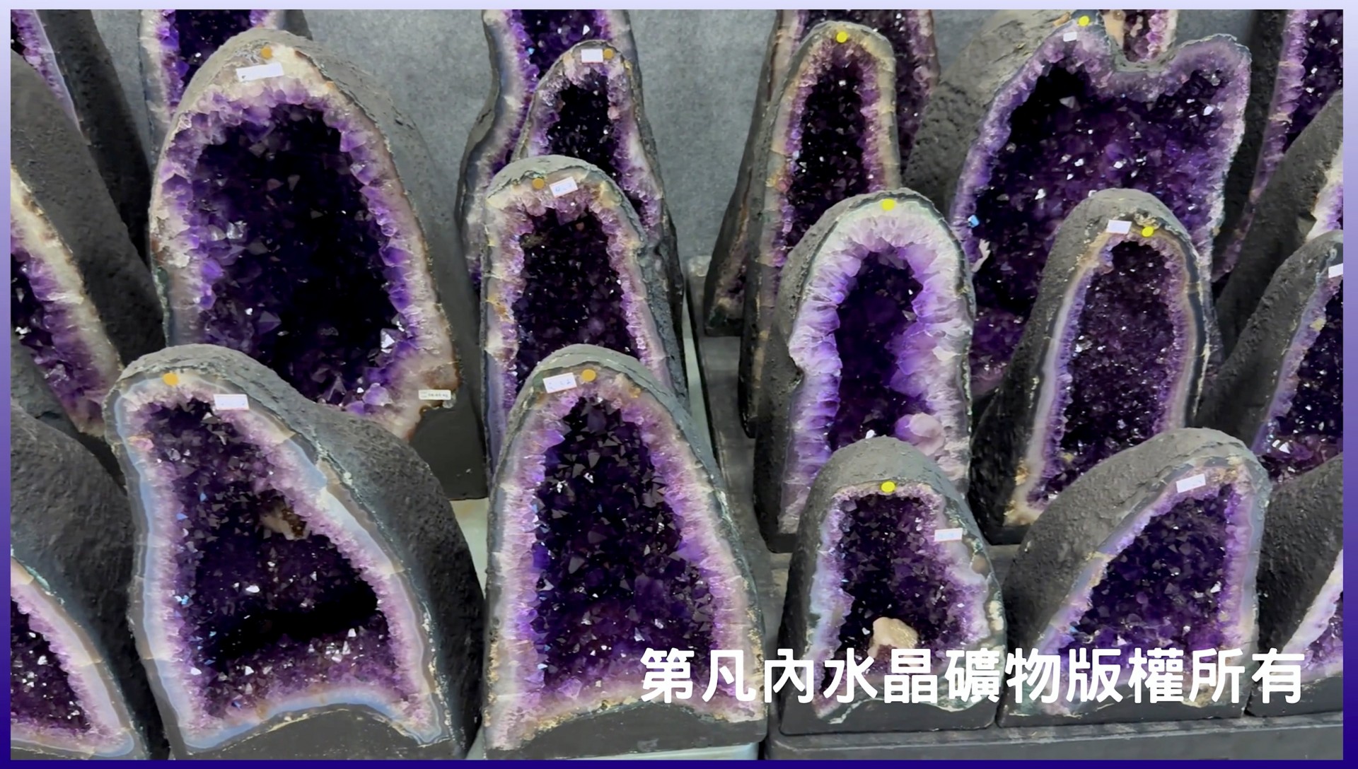 本公司現場展列的巴西紫水晶洞已經高過數百座,合算總重超過數萬公斤,並以親民價格持續邀請各位喜愛水晶的朋友參觀挑選。入門級的紫水晶洞甚至僅要千元上下即可帶回家,除了紫水晶洞也更有許多自世界各地的水晶寶石礦物,誠摯歡迎各位親臨參觀欣賞。