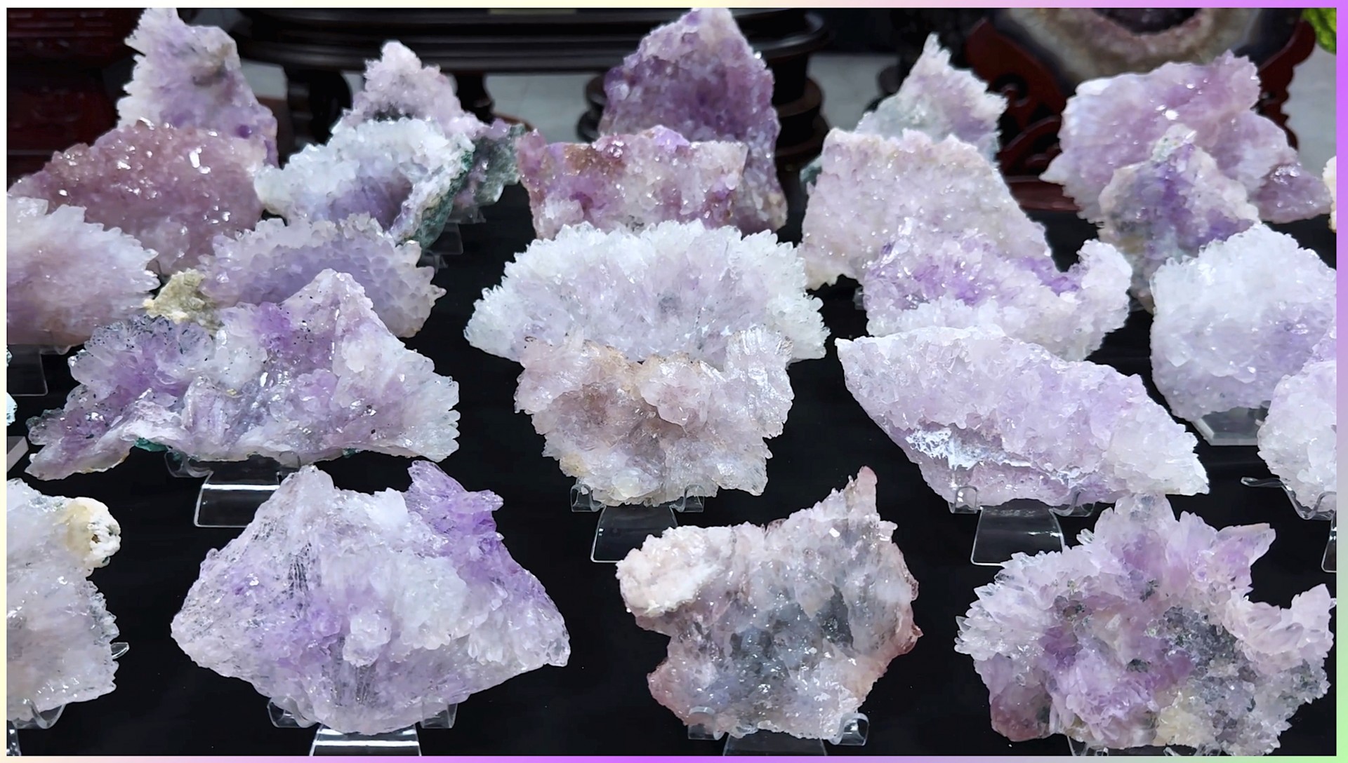第凡內新上架一批巴西的紫水晶花,其顏色多彩鮮麗、晶體完整獨特,有仿如芙蓉含苞、有看似蝶蘭翩翔、有狀若牡丹綻顏,各爭其妍亦各表其豔。紫水晶花盛開綻放的外觀又寓意著花開富貴、錦簇繁華,可說居家自宅安放能調劑身心氛圍、企業店家擺設能提升磁場運勢,歡迎對水晶寶石礦物有興趣的粉絲們撥空蒞臨參觀欣賞。