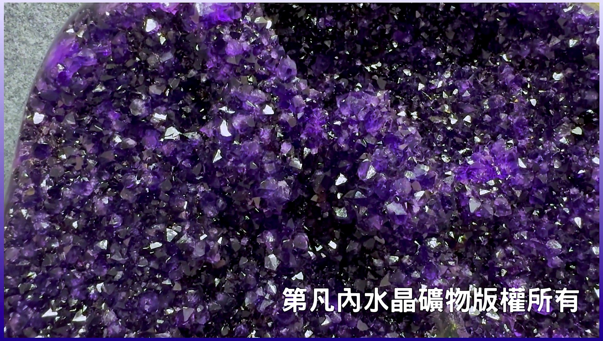 本件特級的紫水晶產自烏拉圭,全世界的紫水晶有百分之八十以上產自巴西跟烏拉圭,一般來說,相比於巴西,烏拉圭的紫水晶因為地質、壓力、土壤元素等各種關係,顏色通常會更深邃並帶有藍靛色。正如本件特級品,不僅呈現濃郁深邃、帶有藍色調的葡萄紫,更天然生成多顆球狀的結晶,真如葡萄一般充滿結實纍纍、豐盛多產的寓意,非常值得收藏。
