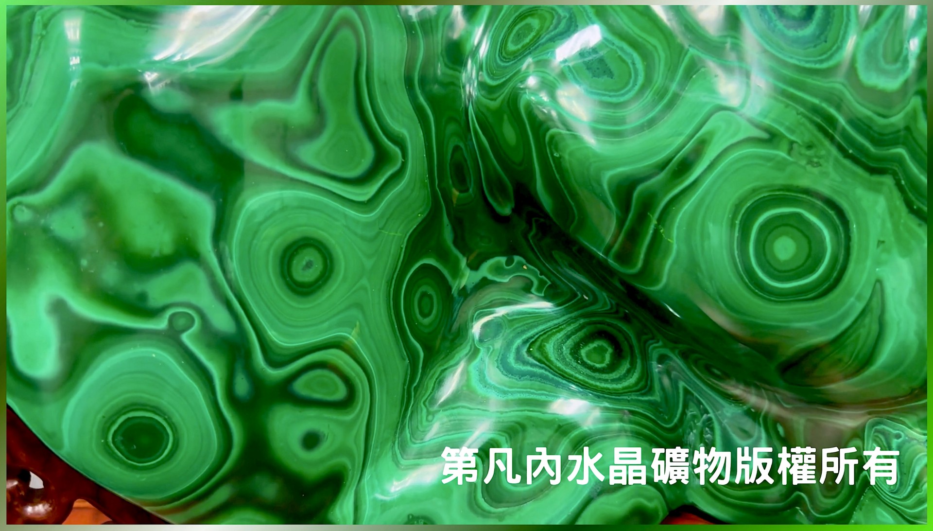 本件特級的拋光孔雀石原礦尺寸適中且完整,不僅整體天然生有許多完整的孔雀翎紋,外型又彷彿船艦乘風破浪、勇往直前,滿有對工作、業績、經營的正向寓意,極適合收藏擺放在店面公司中,歡迎各位喜愛寶石礦物的同好親臨參觀欣賞。