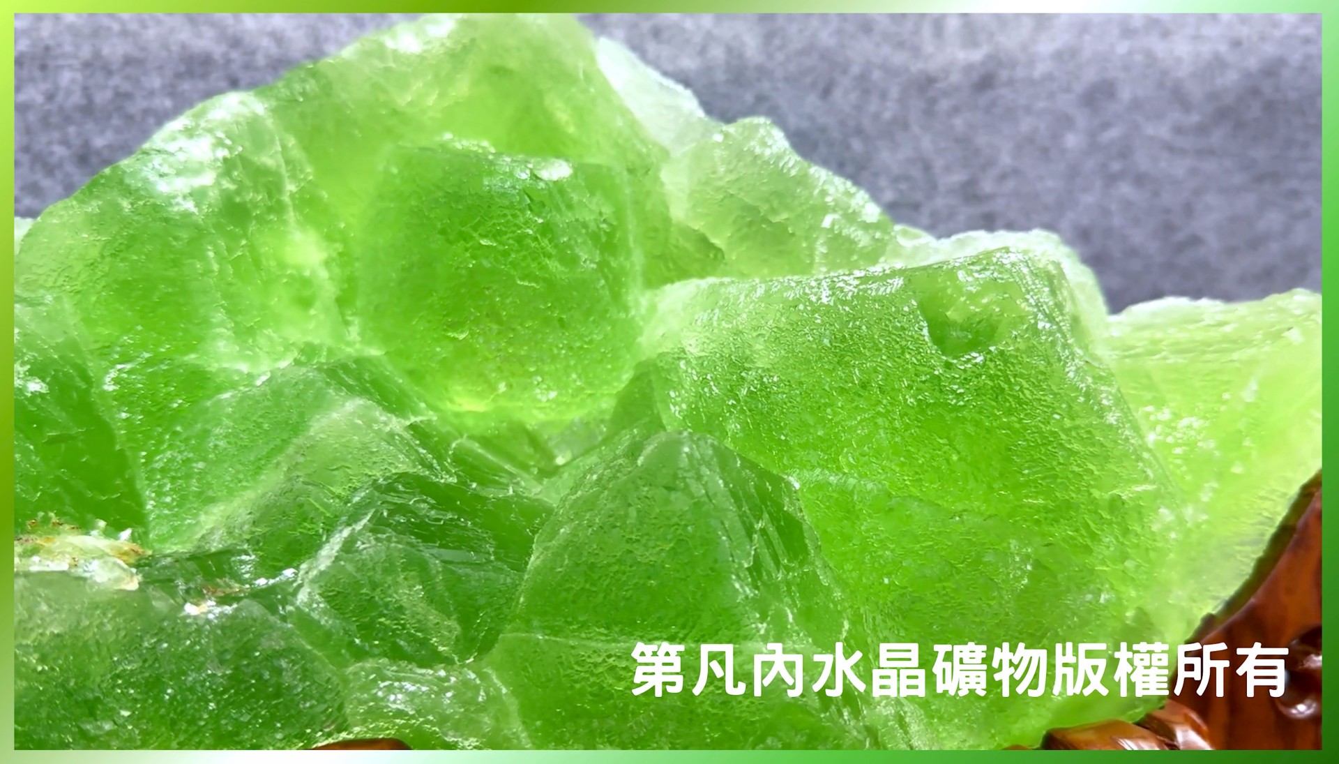 本件特級的綠螢石質地剔透,顏色勻襯優雅,彷彿將一片森林中的湖泊凝結成晶,並天然孕育出群山匯聚、眾嶺環繞之形,以湖綠山青的形象契合風水學裡的山環水抱之意,充滿背有靠山的穩固後盾、聚流成湖的財富匯聚之寓意,非常值得收藏,歡迎對水晶寶石礦物有興趣的粉絲撥空蒞臨參觀欣賞。