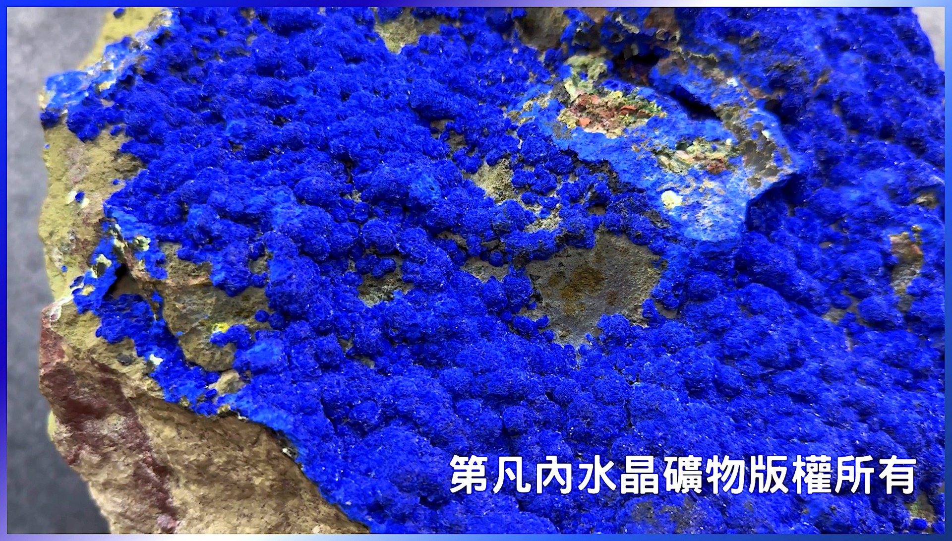 本件藍銅礦產自美國,其晶體顏色優雅鮮豔,深邃而明麗,且花狀的天然晶體完整遍佈於母岩上,如同一片藍色花海,充滿錦簇繁盛、遼闊豐盛的韻意,歡迎喜愛水晶寶石礦物的朋友親臨觀賞。