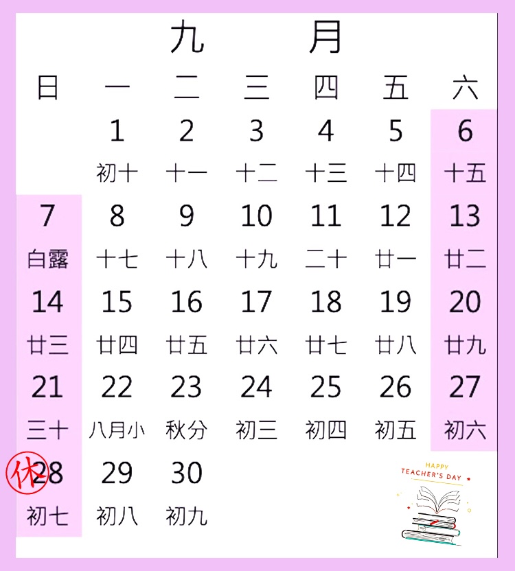 【教師節連續假期 營業時間公告】