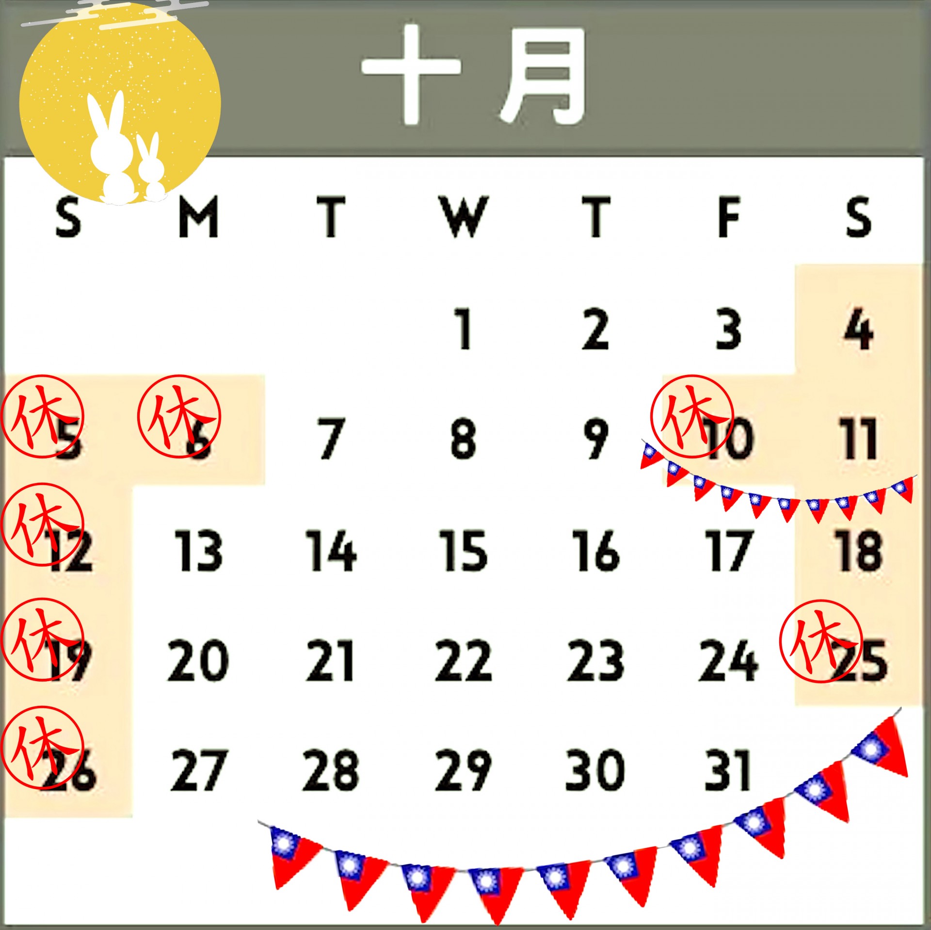 【光輝十月連續假期 營業時間公告】