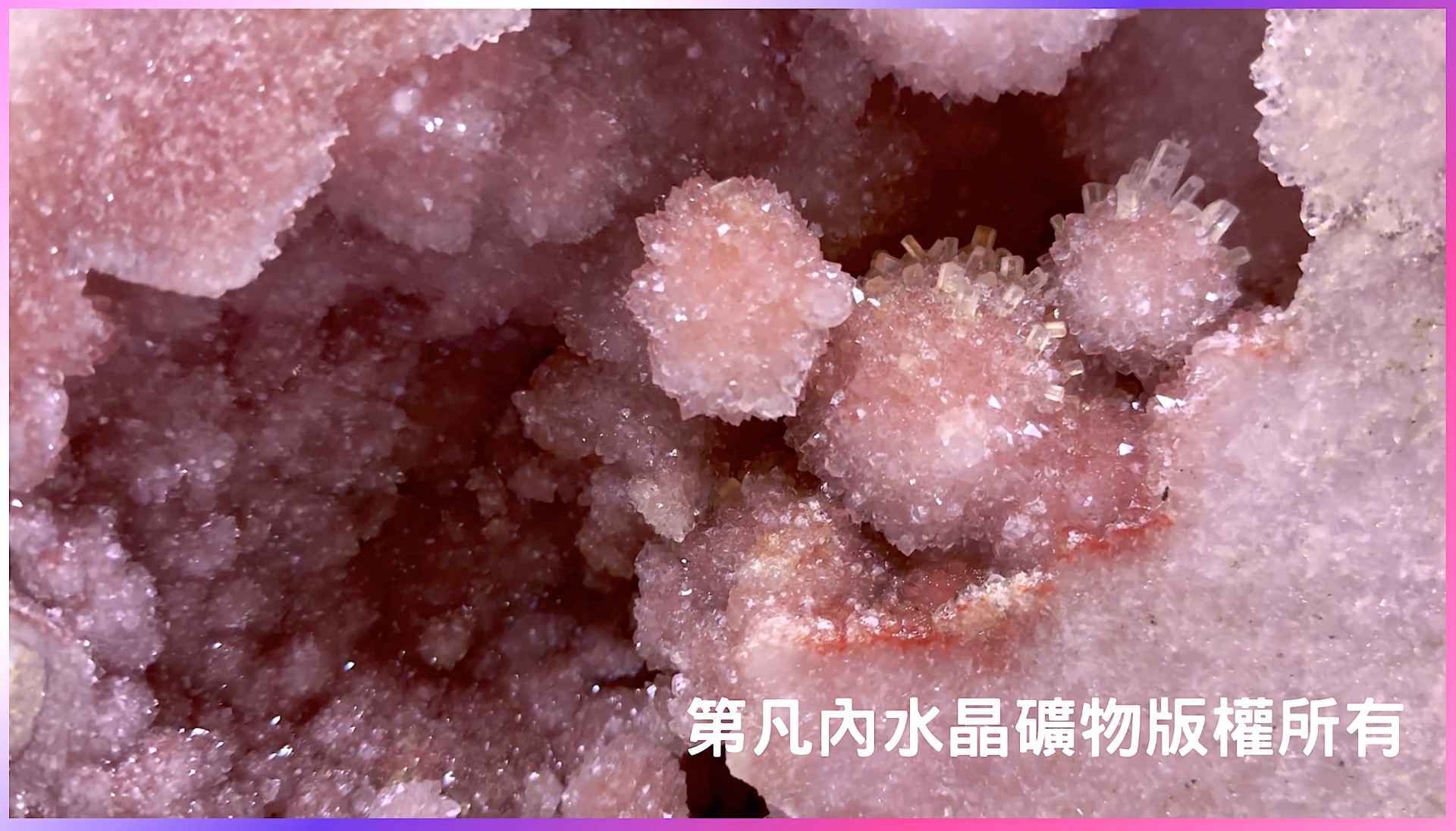 本件特級的成對夢幻水晶通體呈現希罕的粉色,成對水晶洞本身就不常見,而成對的粉色夢萬水晶就更加難得。這對粉色夢幻水晶的晶體更天然生成繁盛的花苞狀結晶,讓其充滿花團錦簇的豐盛華麗韻味,彷彿喻示著人際關係的圓融與突破,又似寓意著四處遇貴人、八方有門路豐收拓展之象,乃極適合收藏的珍品。
